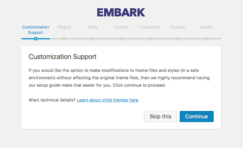 If you would like the option to make modifications to theme files and styles (in a safe environment) without affecting the original theme files, then we highly recommend having our setup guide make a child theme for you.
