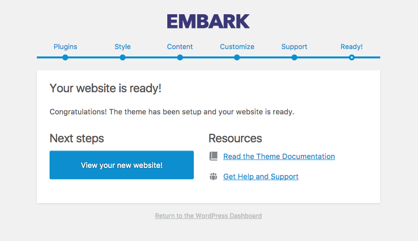 Congratulations! The theme has been setup and your website is ready.