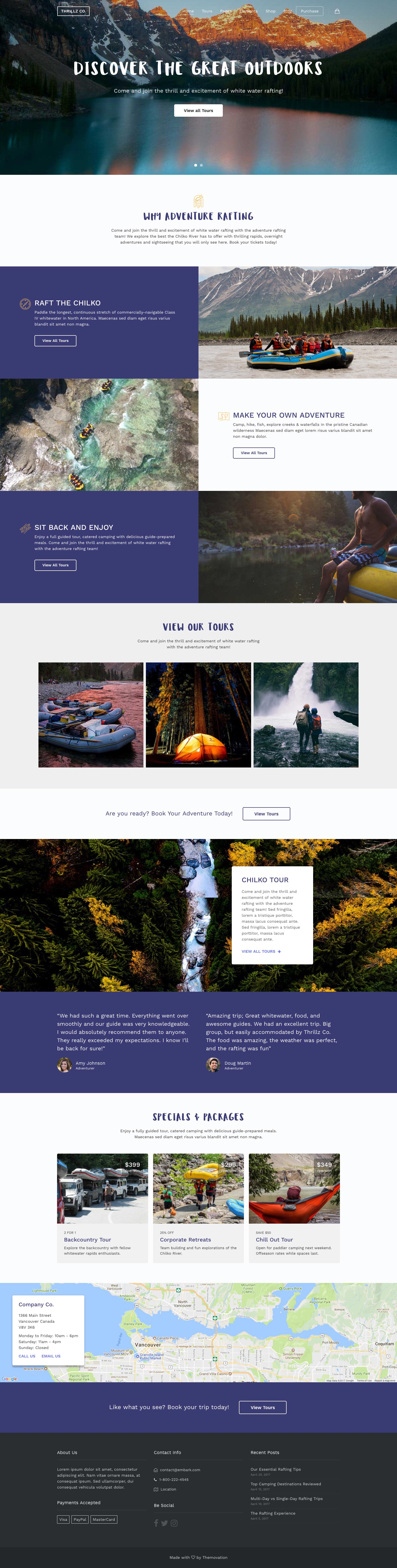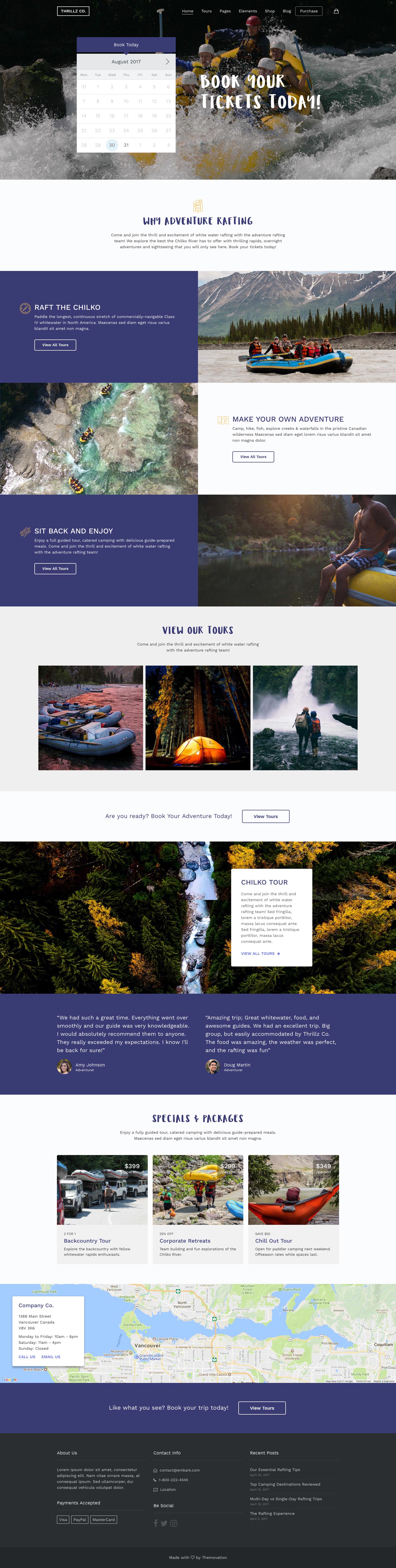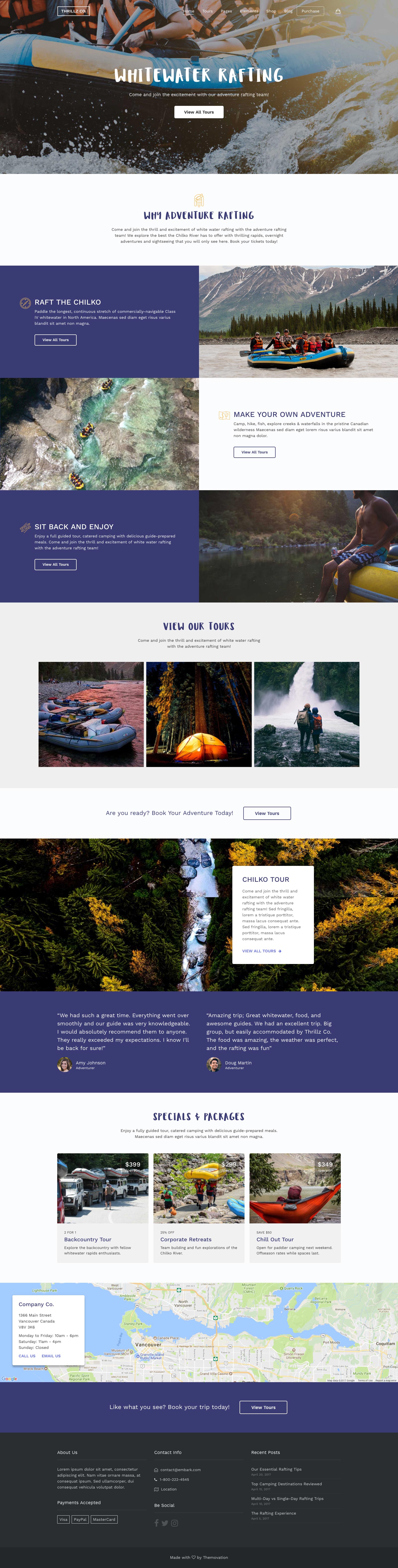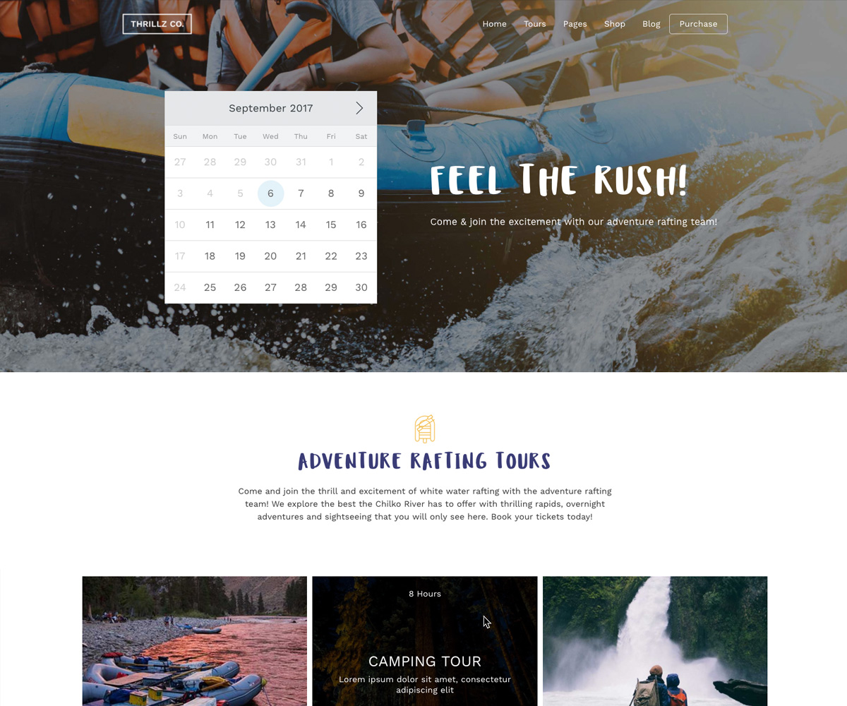 Build your own layouts or start with a preset design for Adventure River Rafting Tours, NYC for Walking Tours, or Hop & Vine for Wine and Beer Tours, with more designs added regularly. All presets are built with a keen attention to detail and specific to the travel and tour niche.