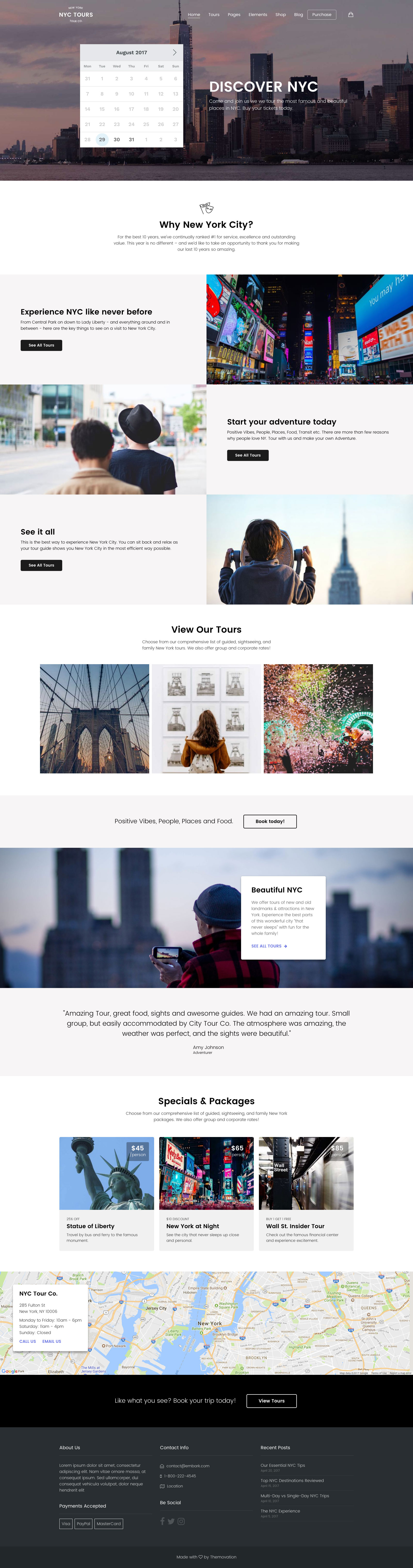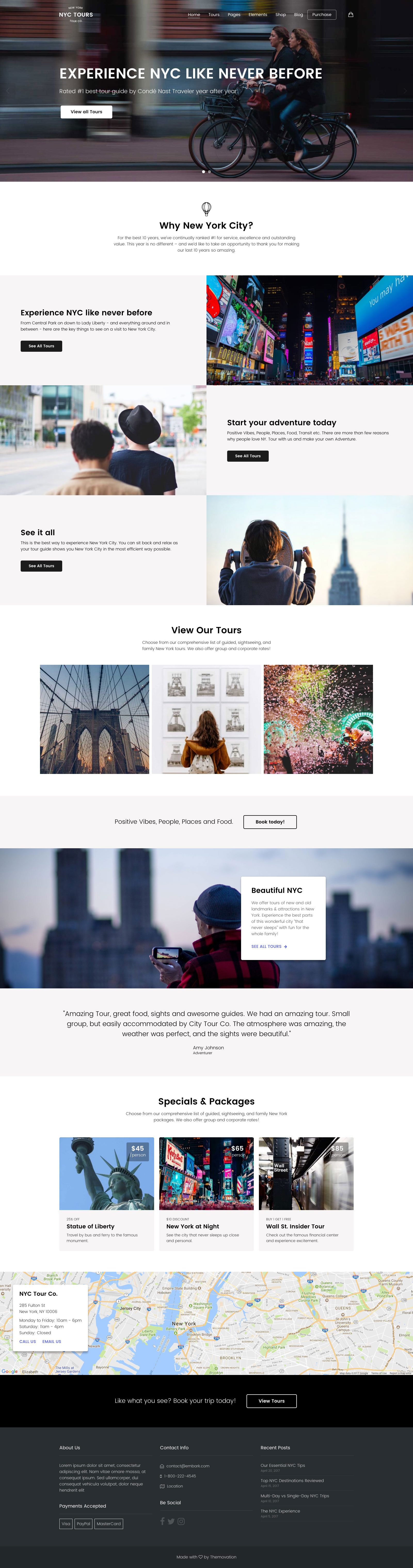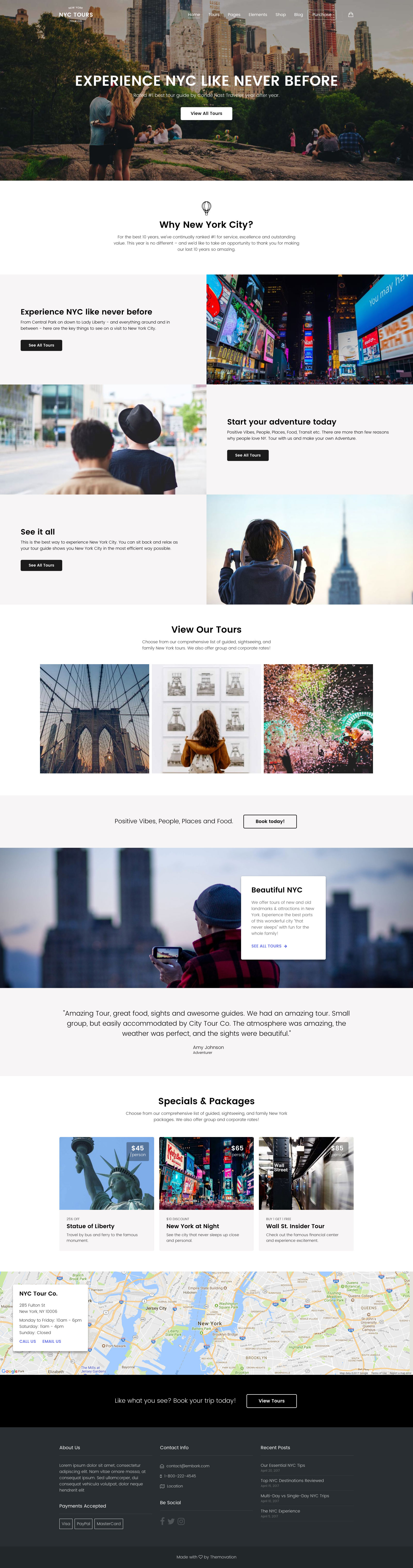 Build your own layouts or start with a preset design for Adventure River Rafting Tours, NYC for Walking Tours, or Hop & Vine for Wine and Beer Tours, with more designs added regularly. All presets are built with a keen attention to detail and specific to the travel and tour niche.