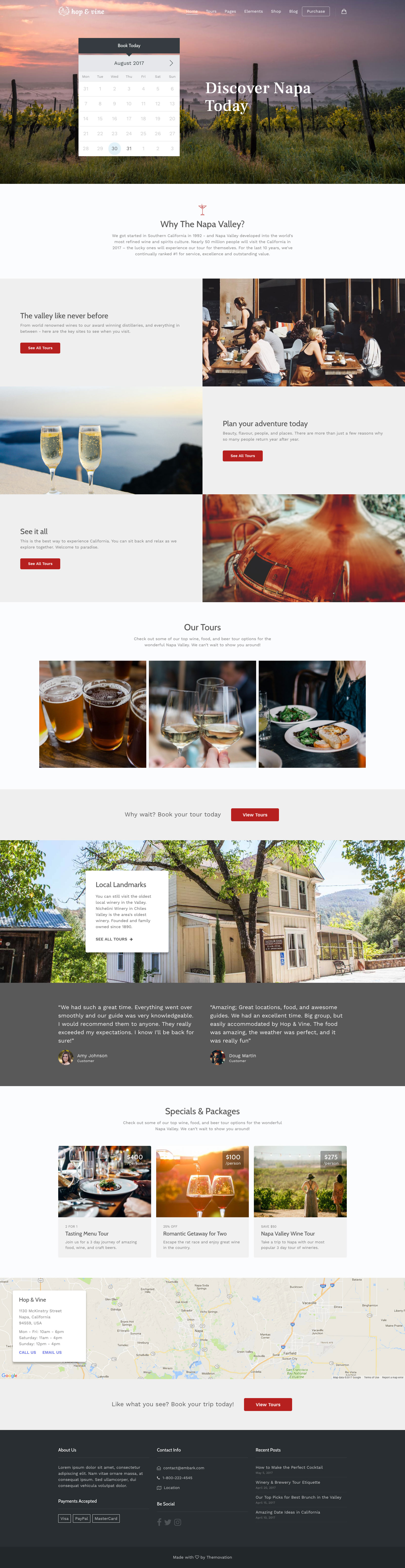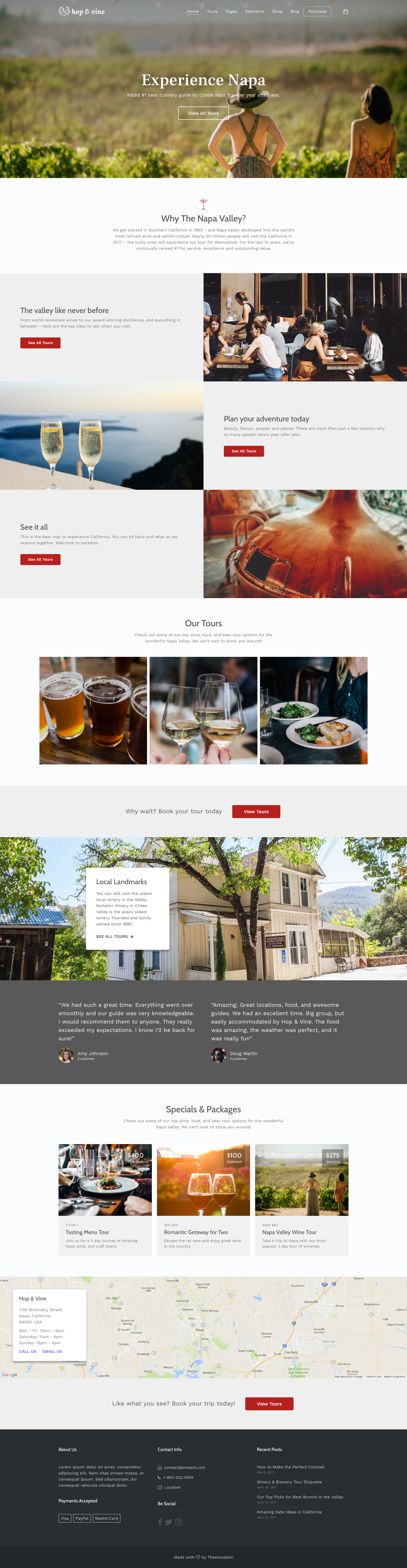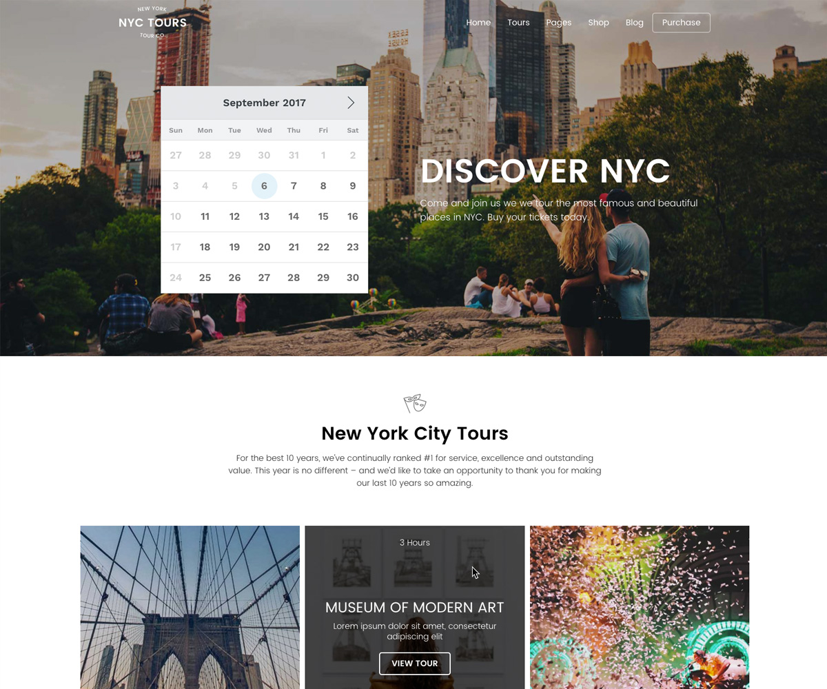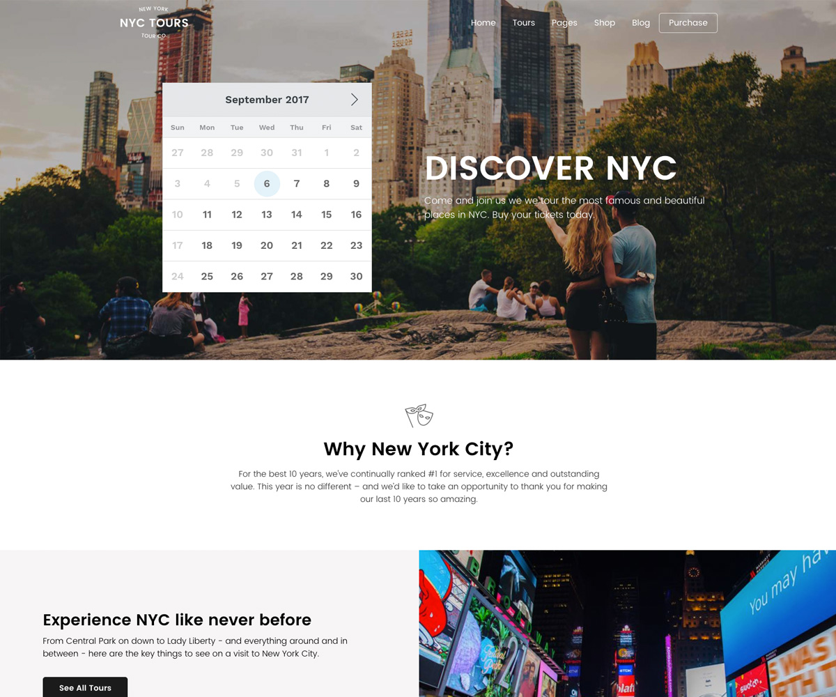 Build your own layouts or start with a preset theme for Adventure River Rafting Tours, NYC for Walking Tours, or Hop & Vine for Wine and Beer Tours, with more theme designs added regularly. All presets are built with a keen attention to detail and specific to the travel and tour niche.